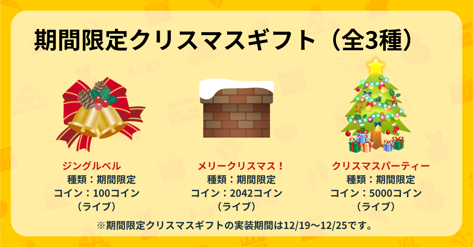 みんなで期間限定ギフトを贈り合って、クリスマス気分を楽しんで盛り上がろう🎵