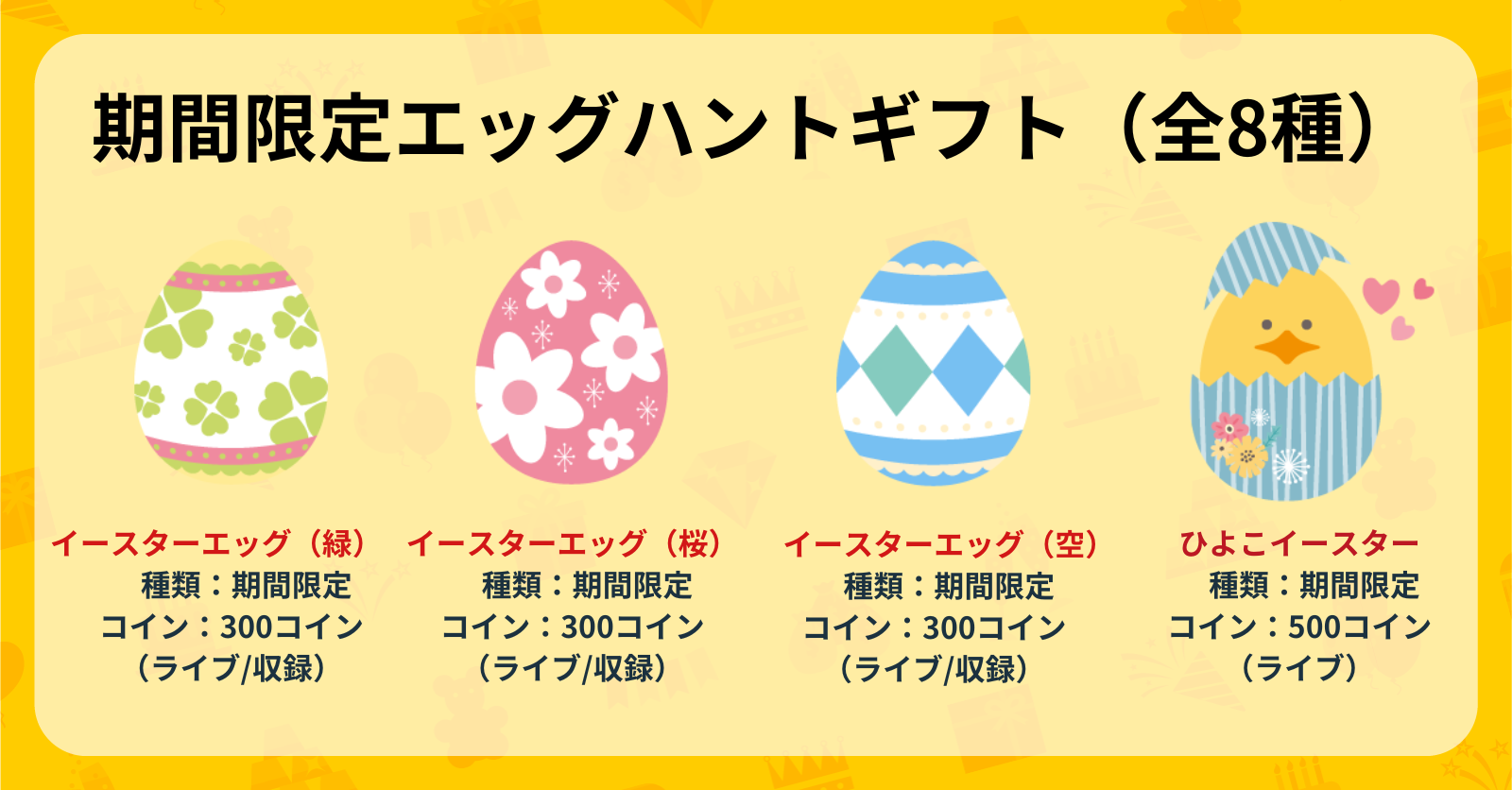 | ひよこイースター | 500 | 10% |