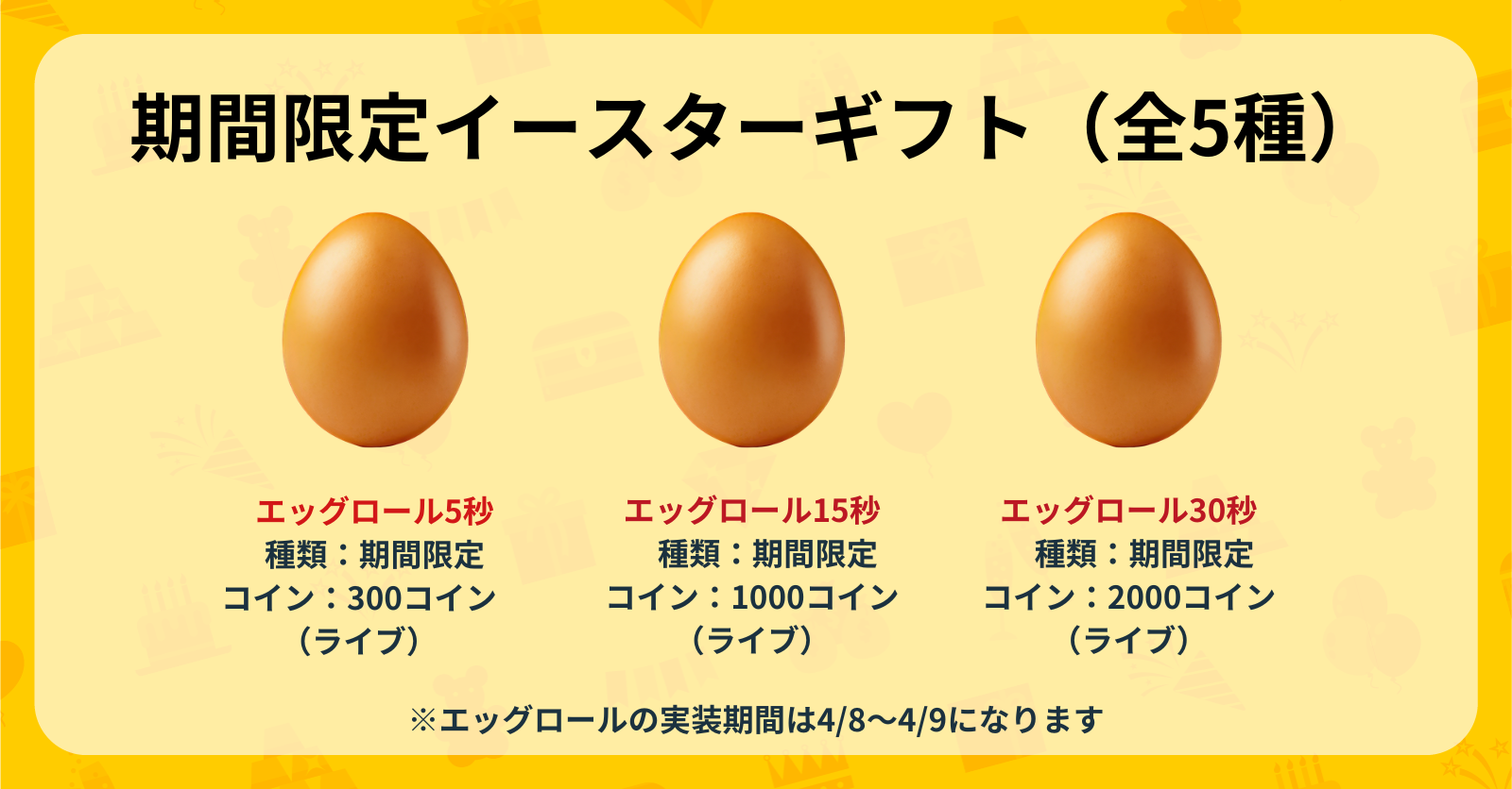 ※期間限定イースターギフトは「報酬:エッグハント」の対象外となります。