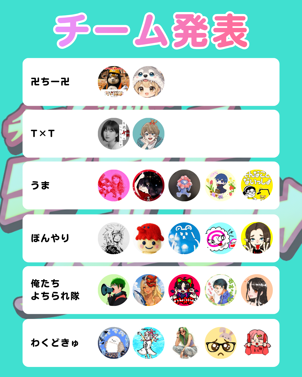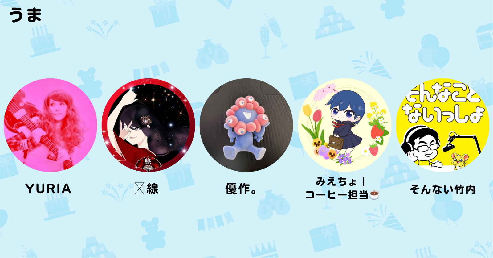 私たちチームうまは、線、そんない、みえちょ、 YURIA🩷、優作。、5人一丸となってラジオトークを 盛り上げる事をここに誓います