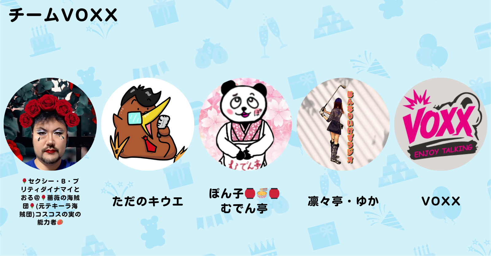 4年半配信していてほとんどのイベントに参加していませんでした。VOXXのメンバーに入れていただいて、参加させていただくことになりました。チームみんなの共通ギフトがあれば楽しいだろうなぁ!がんばりまぁす♪