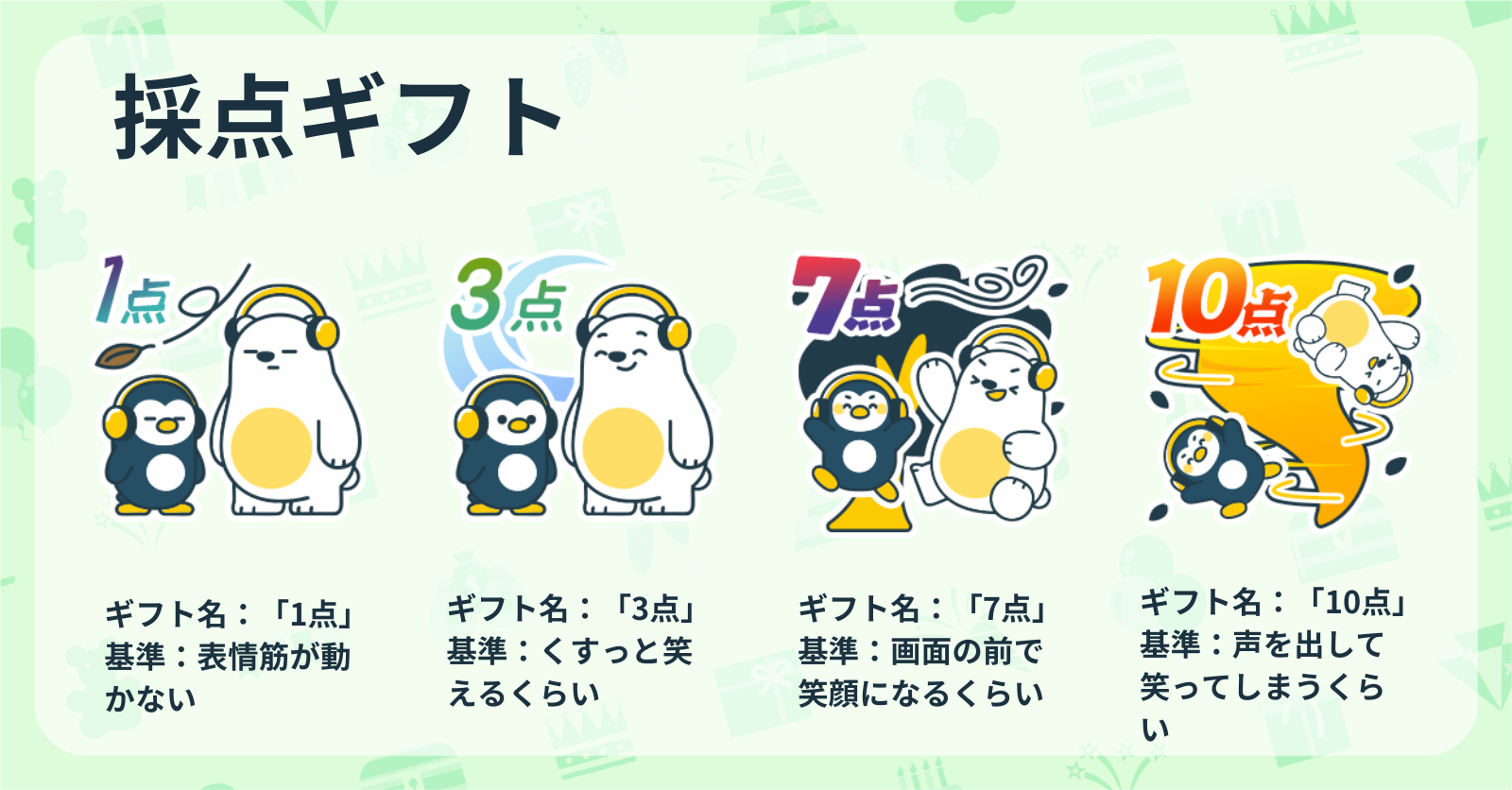 採点方法は簡単!自分の気持ちに応じたギフト(採点ギフト)を投げるだけ!