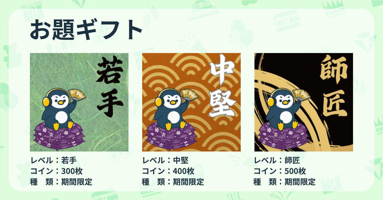 ①「お題」ギフト(レベル別)
