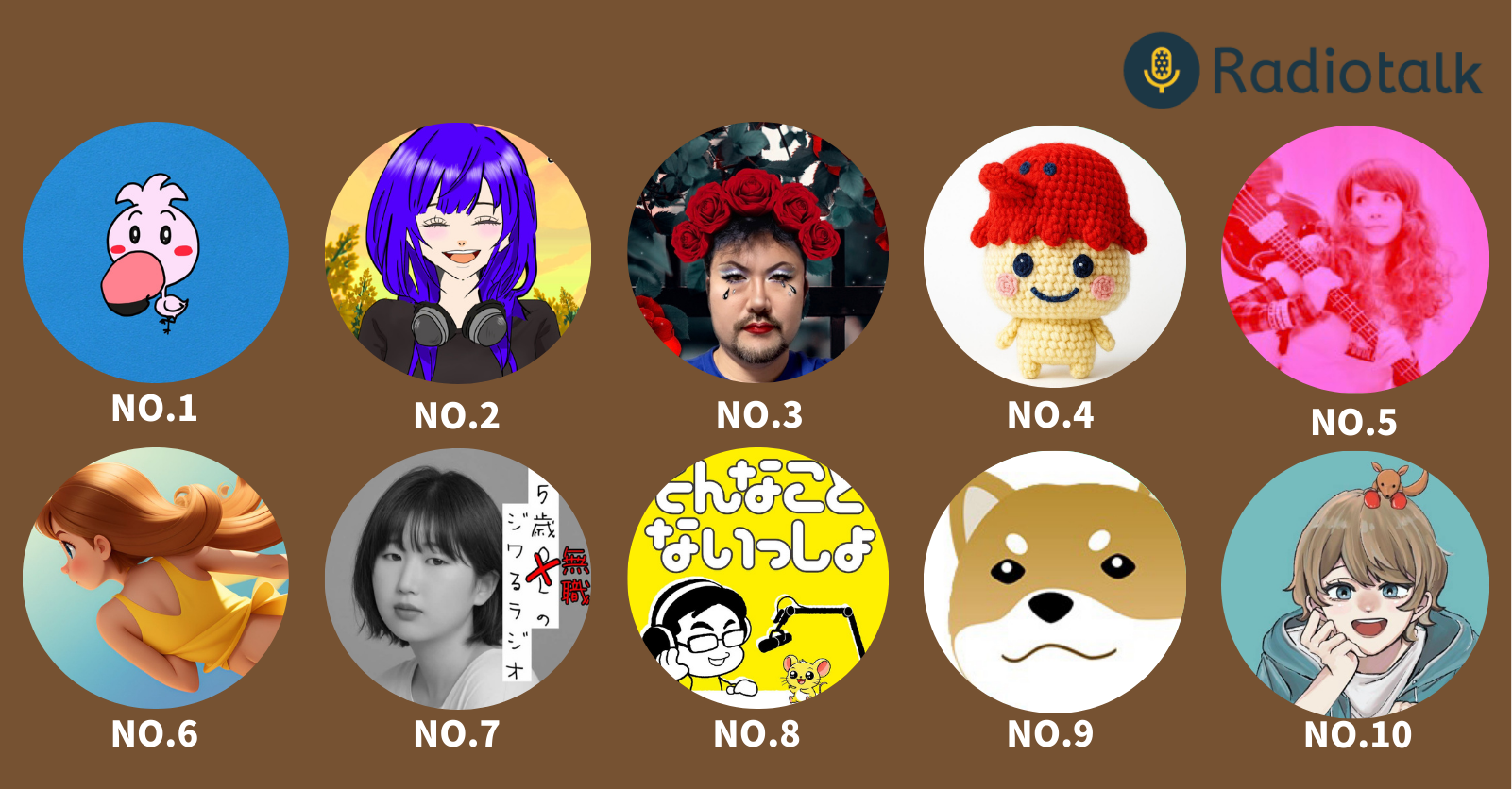 - 上位3位に選ばれた方のXアカウントは、Radiotalkのマイページに設定しているアカウントを紹介します。
