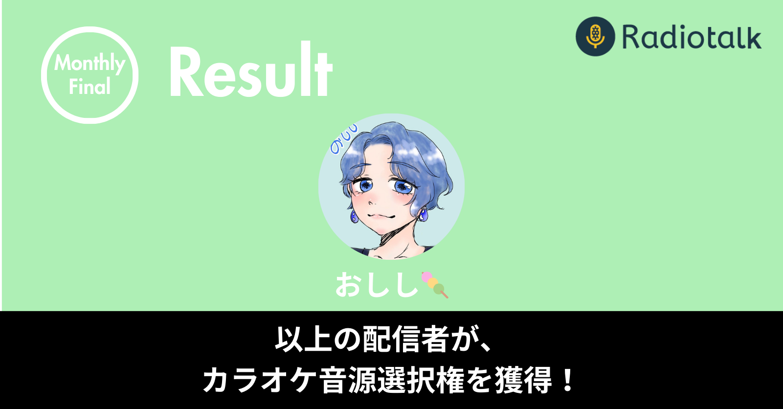 | 各回のランキング1位配信者 | Radiotalkポイント 10,000pt |