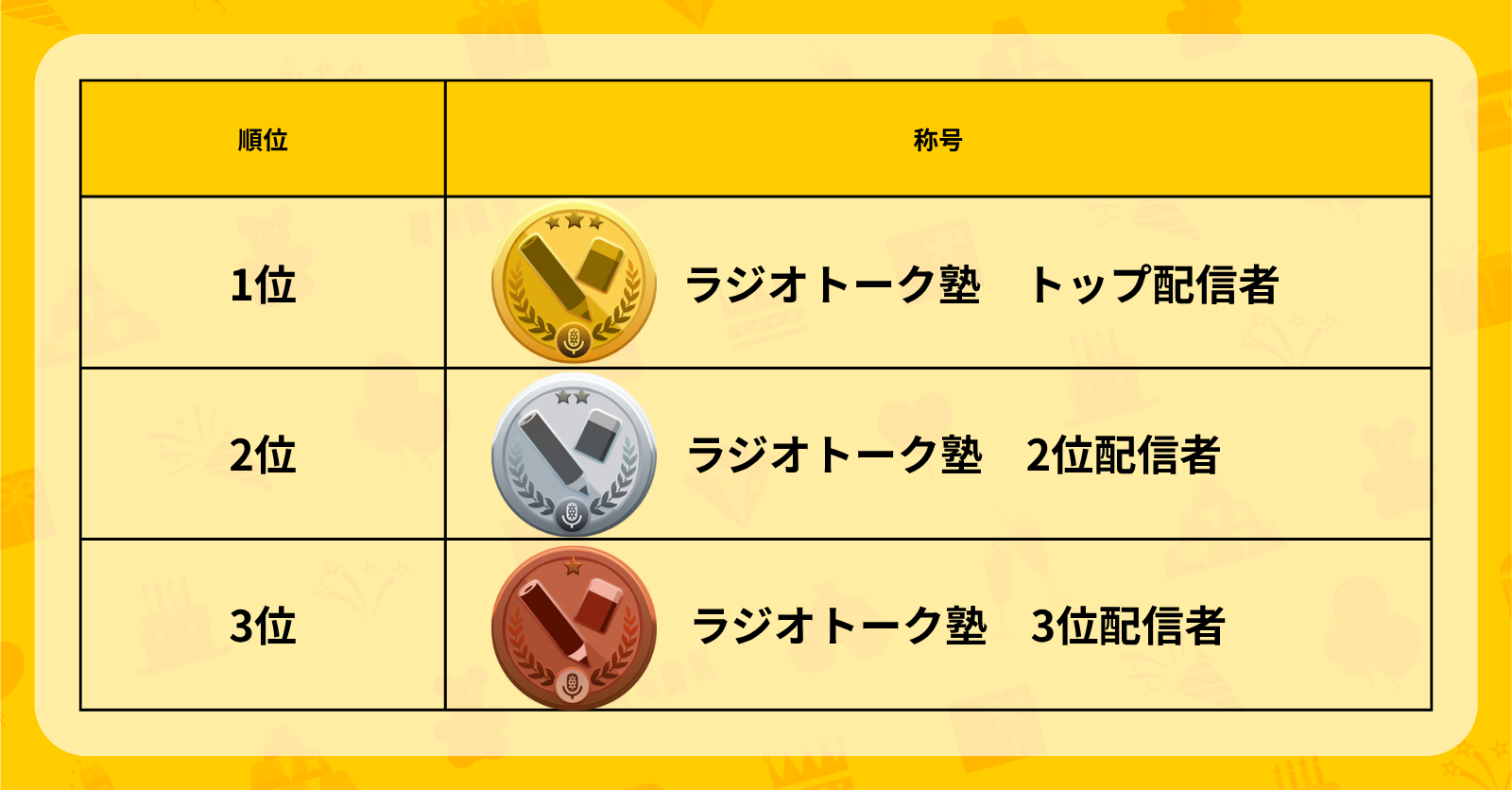 デイリーランキングで総獲得SCOREが最も多かった3名には、それぞれRadiotalkポイントをプレゼントします。