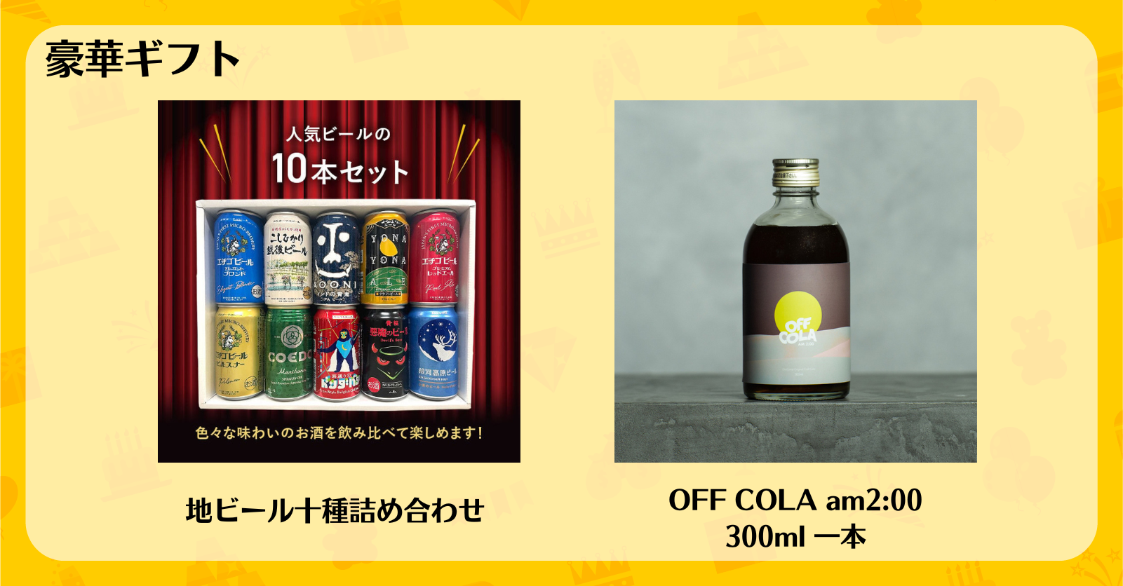 ②豪華景品「ビール詰め合わせorクラフトコーラ」
