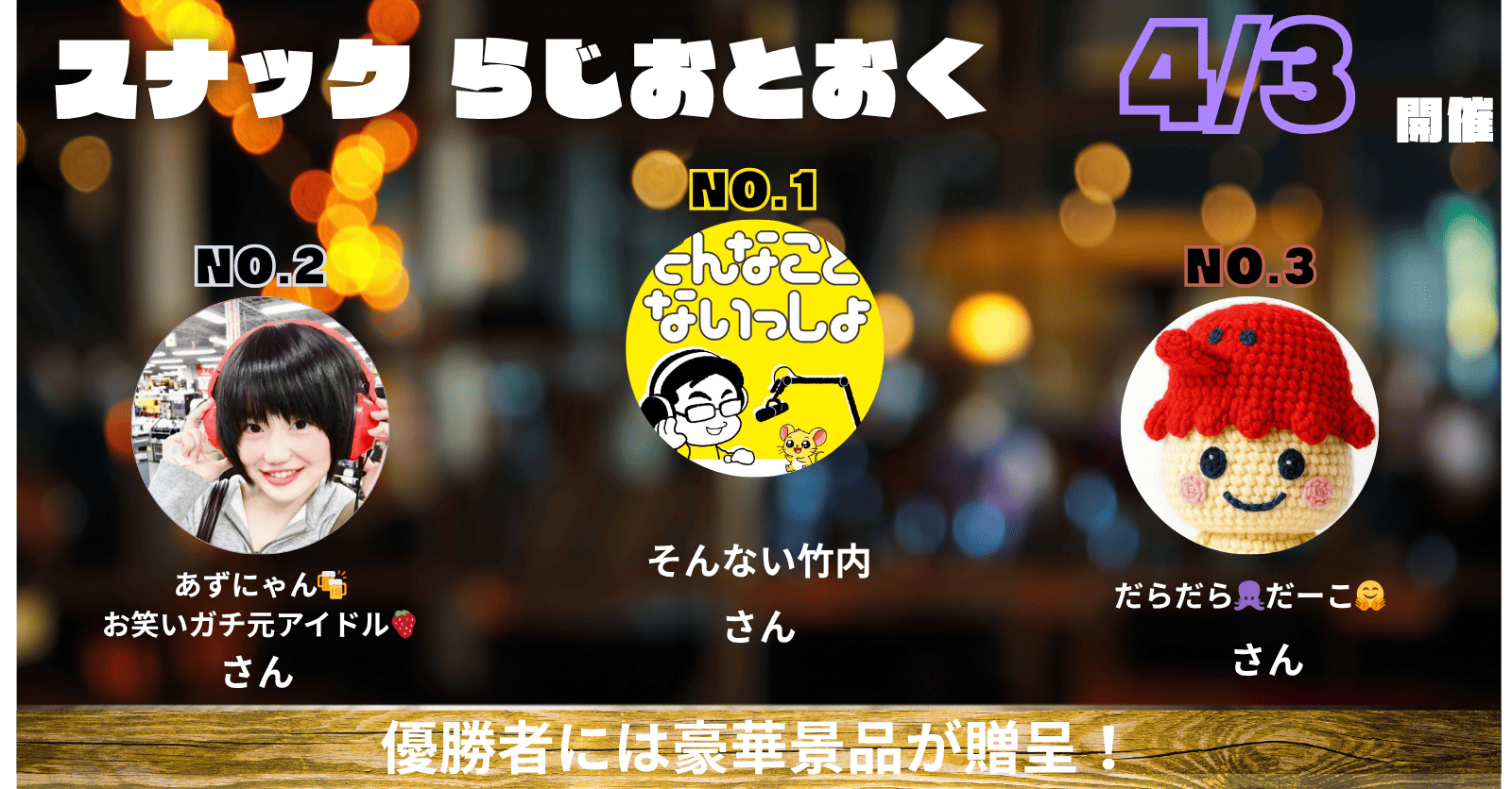 「スナック らじおとおく」で1位となった配信者様には称号を付与いたします。