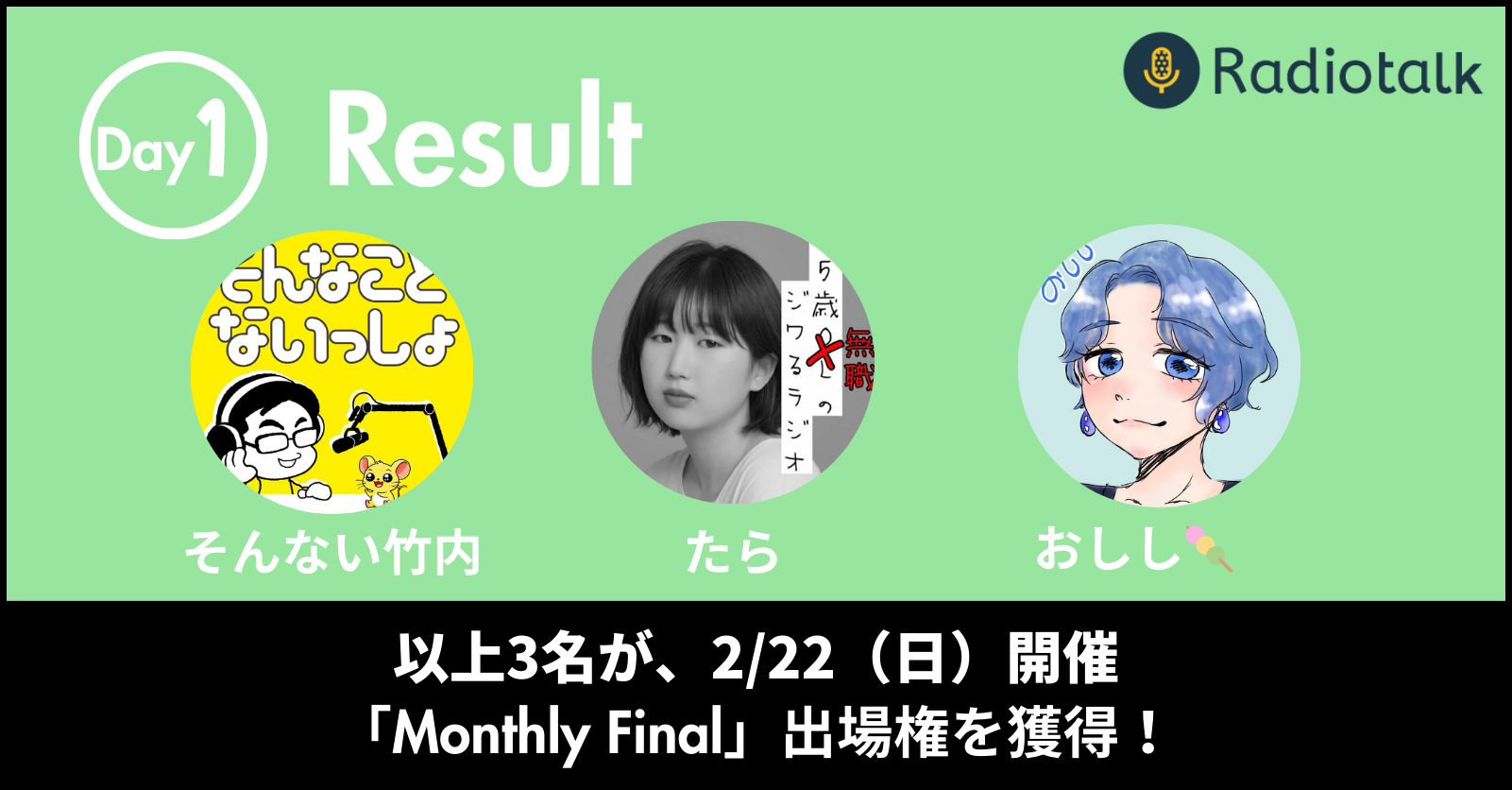 - 上位3位に選ばれた方のXアカウントは、Radiotalkのマイページに設定しているアカウントを紹介します。