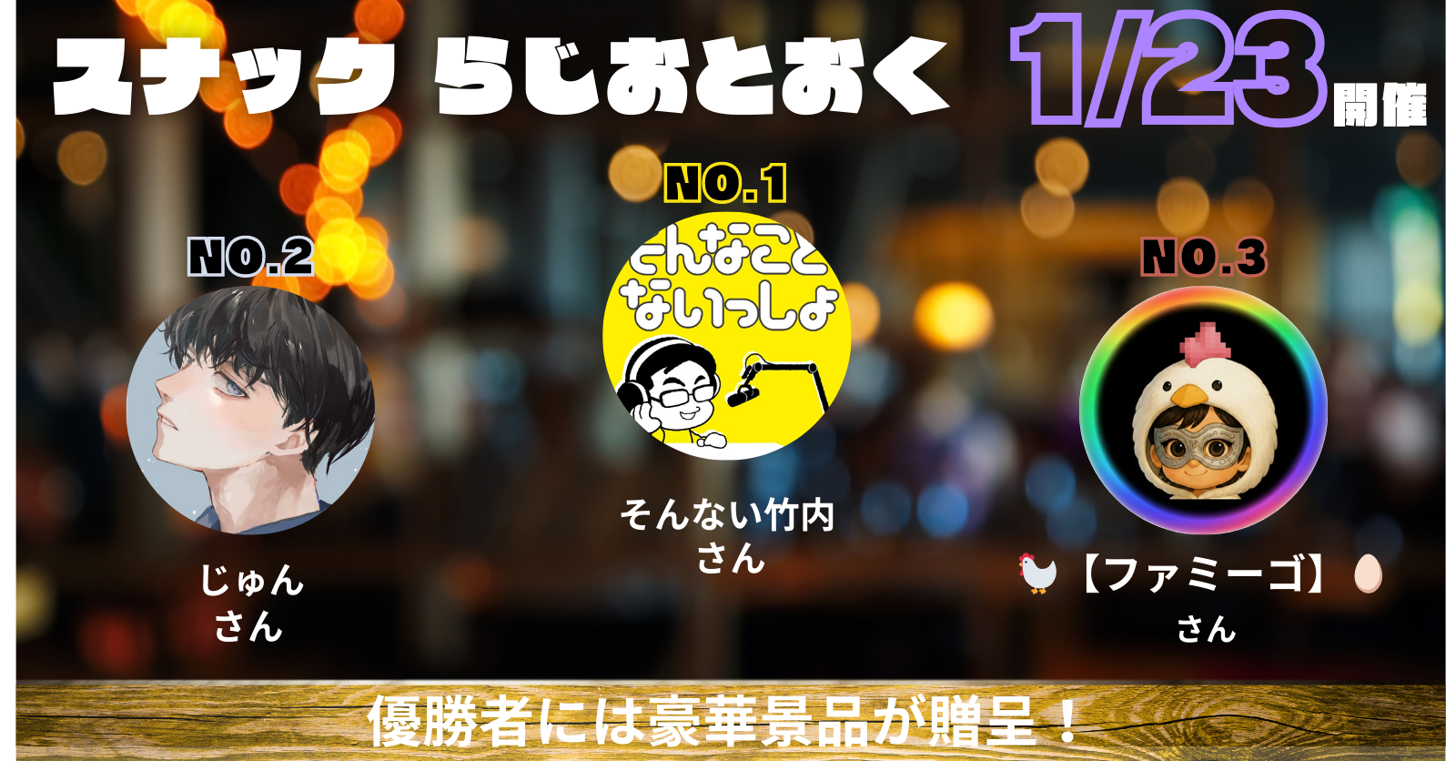 「スナック らじおとおく」で1位となった配信者様には称号を付与いたします。