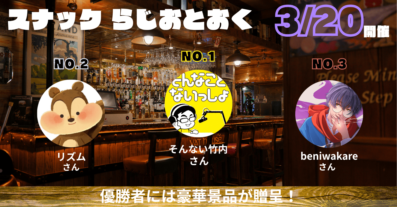 「スナック らじおとおく」で1位となった配信者様には称号を付与いたします。